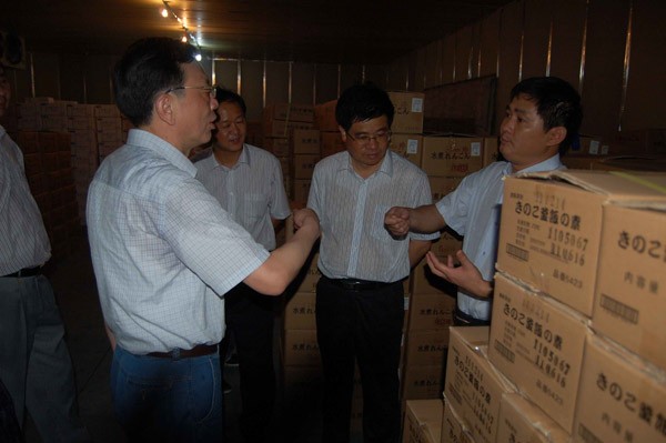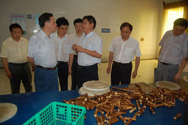 7月5日下午,兴化市委书记陆晓声冒雨到我公司考察调研。公司董事长莫鹏启向陆书记详细地介绍了公司生产销售情况,并陪同陆书记一起参观了生产车间。陆书记希望公司利用兴化农副产品的优势,把企业做大做强,更好地致富百姓。